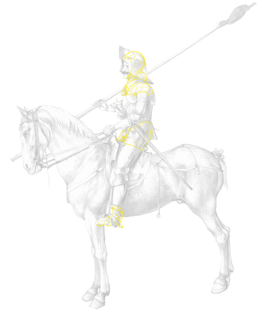 Um sich an das Tragen eines Harnischs zu gewöhnen, empfahl Olivier de la Marche in Le Chevalier deliberé (1483) „ein Ringpanzerhemd anzulegen und die Schuhe mit Blei zu beschweren.“