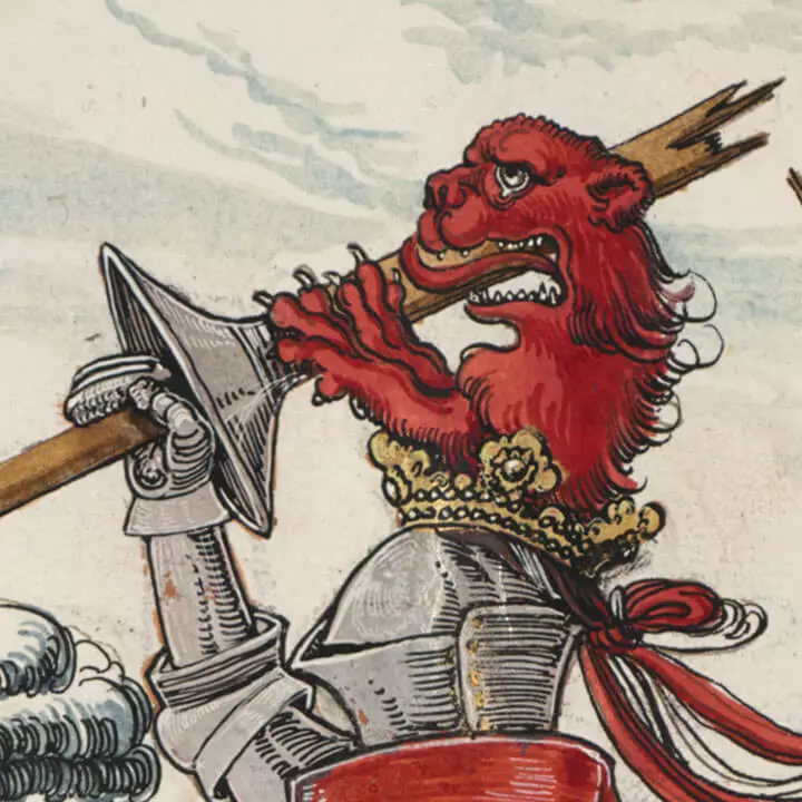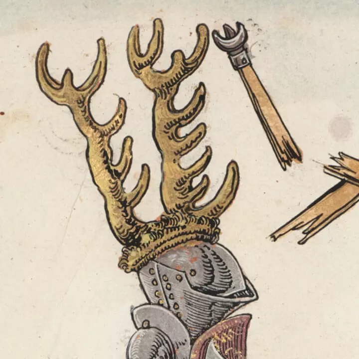 During the so-called ‘inspection of the helmets’, the ladies of the court verified the participants’ pedigrees. In this they were joined by a herald, a royal officer of arms versed in heraldry. If they discovered an interloper, his helmet could easily land in the gutter.