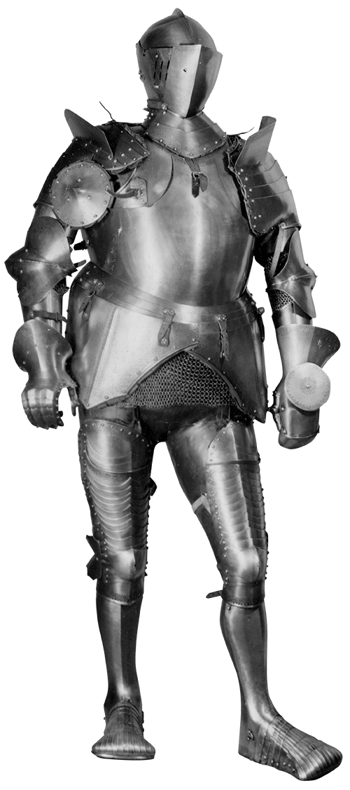 A harness comprises numerous individual pieces – the most important are helmet, gorget, breast- and backplate, rere- and vambraces, greaves, and cuisses.