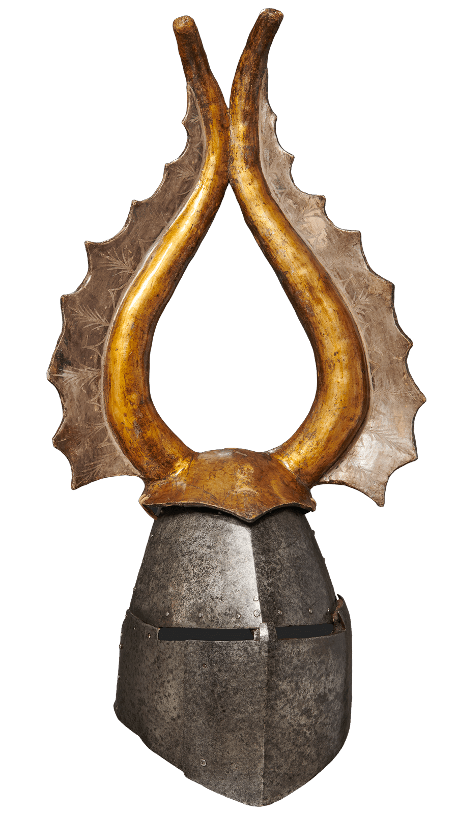 Armourers produced helmets with fantastic visors in the shape of human or animal faces, or mythological grimaces. These works document both their creativity and their virtuosity.